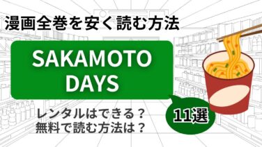お得情報 【SAKAMOTO DAYS(サカモトデイズ)】漫画全巻を安く読む方法11選!レンタルはできる?無料で読む方法は? 「SAKAMOTO DAYS」を安く読む方法について解説しています。安く読む方法が知りたい、情報が多くてどの方法がいいのかわからない、安心して利用できるサービスを探しているなどのお悩みを解決します。 お得情報未分類
