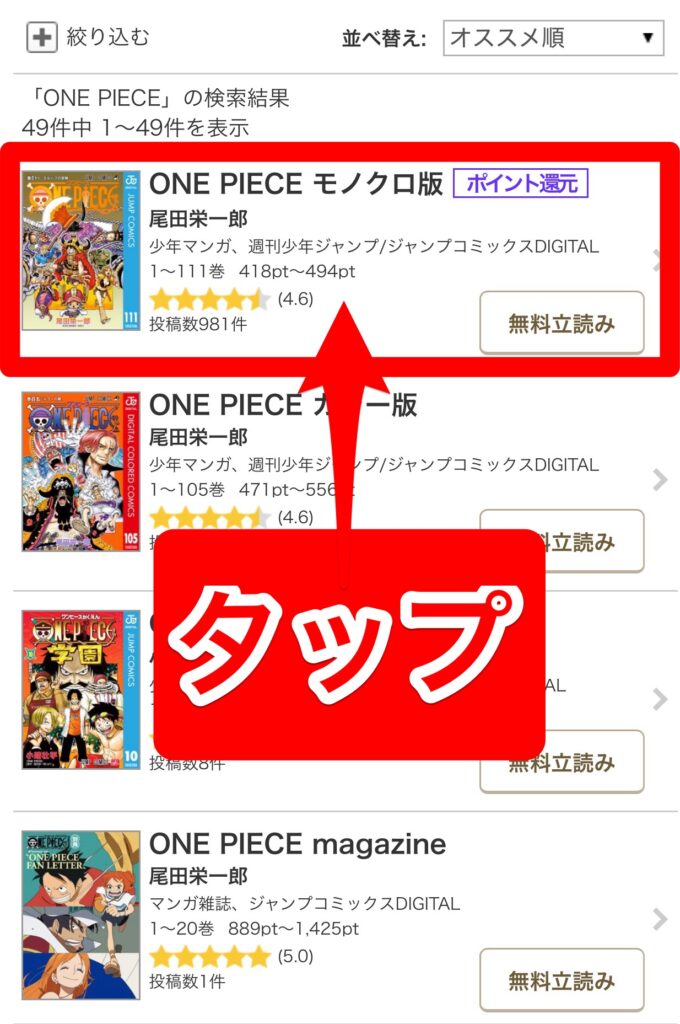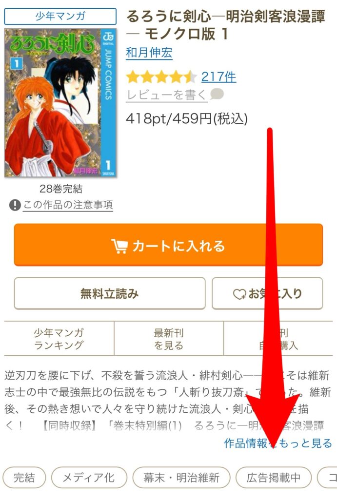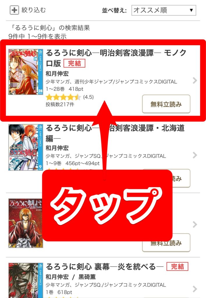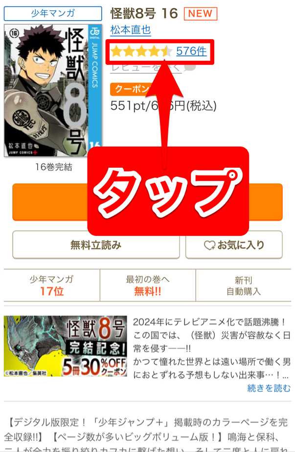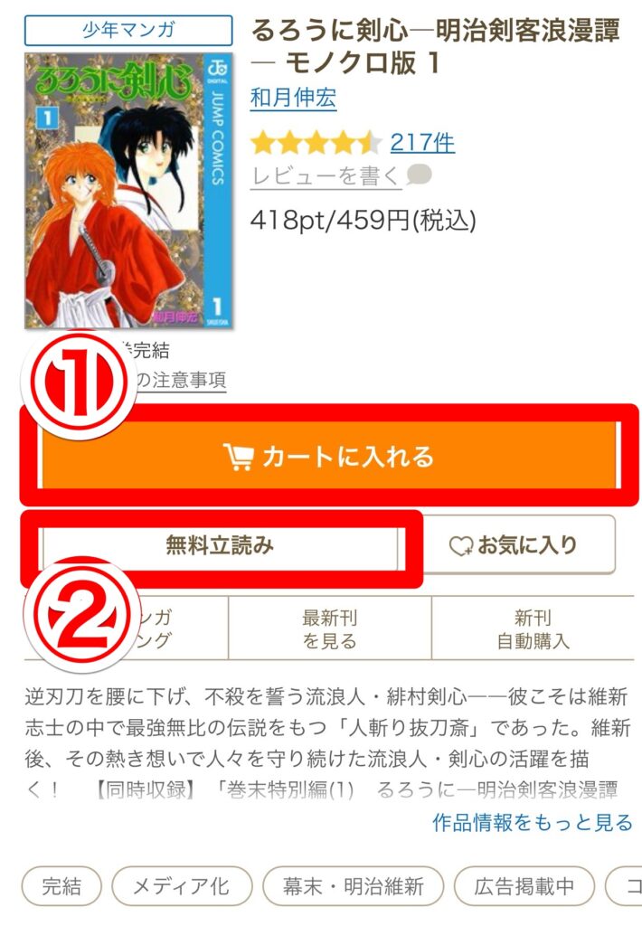 ②立読みをしたい場合は、「無料立読み」をタップすると、作品の試し読みができる