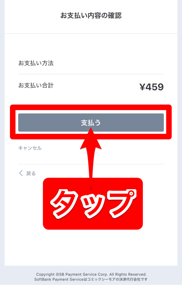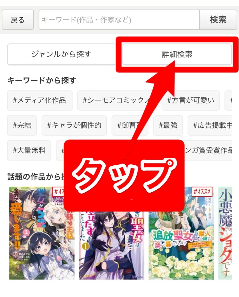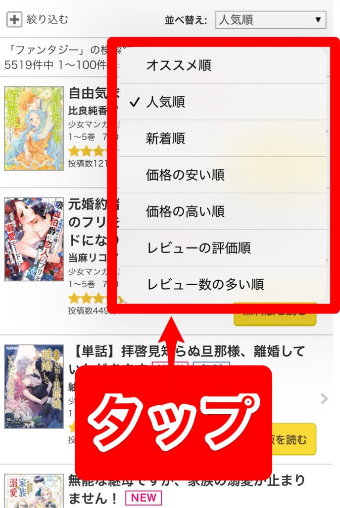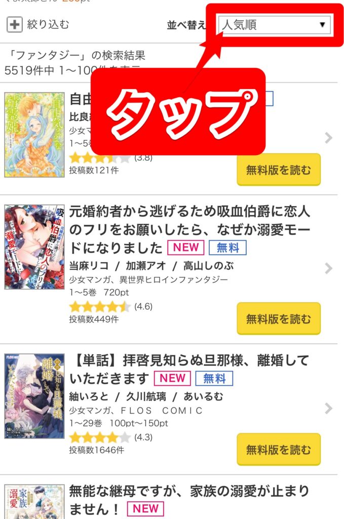 ②立読みをしたい場合は、「無料立読み」をタップすると、作品の試し読みができる