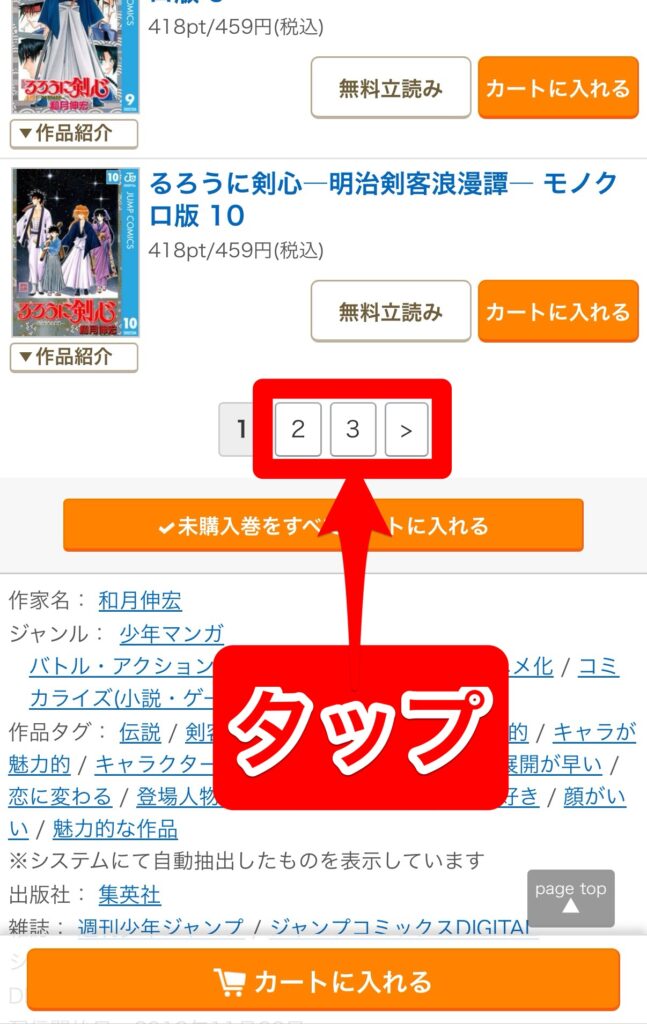 ⬇11巻以降を読みたい場合は、画面下の「2」・「3」・「>」をタップすると、表示される