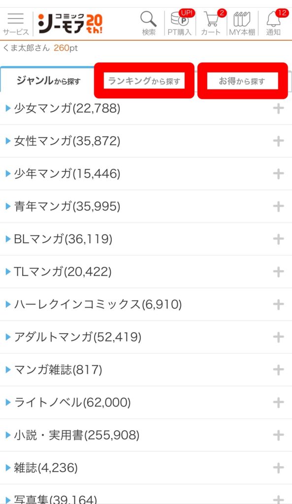 ⬇「ランキングから探す」や「お得から探す」から探すこともできる