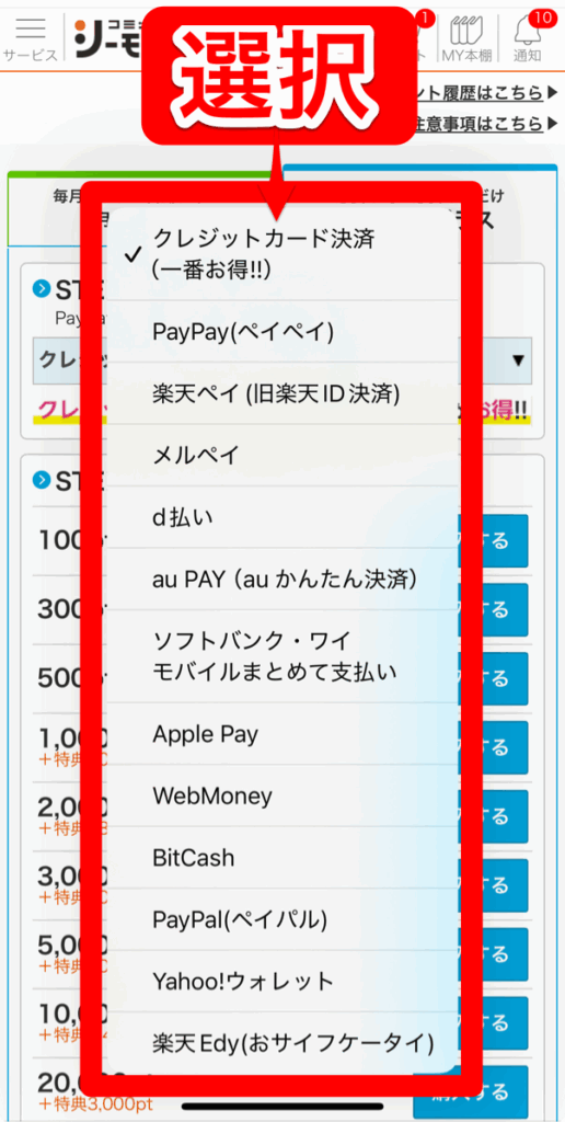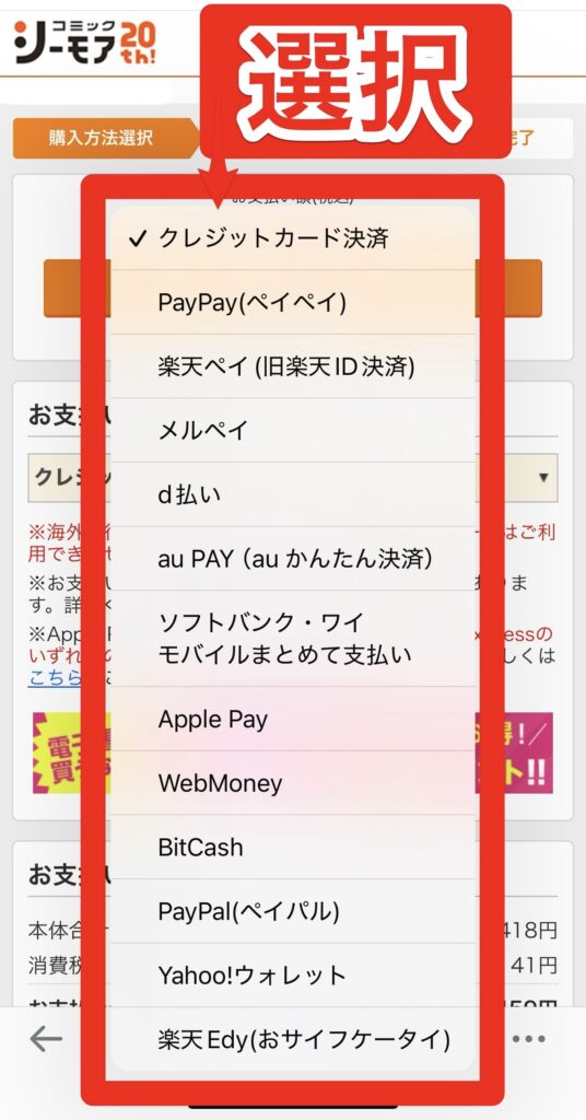 コミックシーモアでは、クレジットカード、キャリア決済、電子マネー、銀行振込など、さまざまな支払い方法が用意されています。
