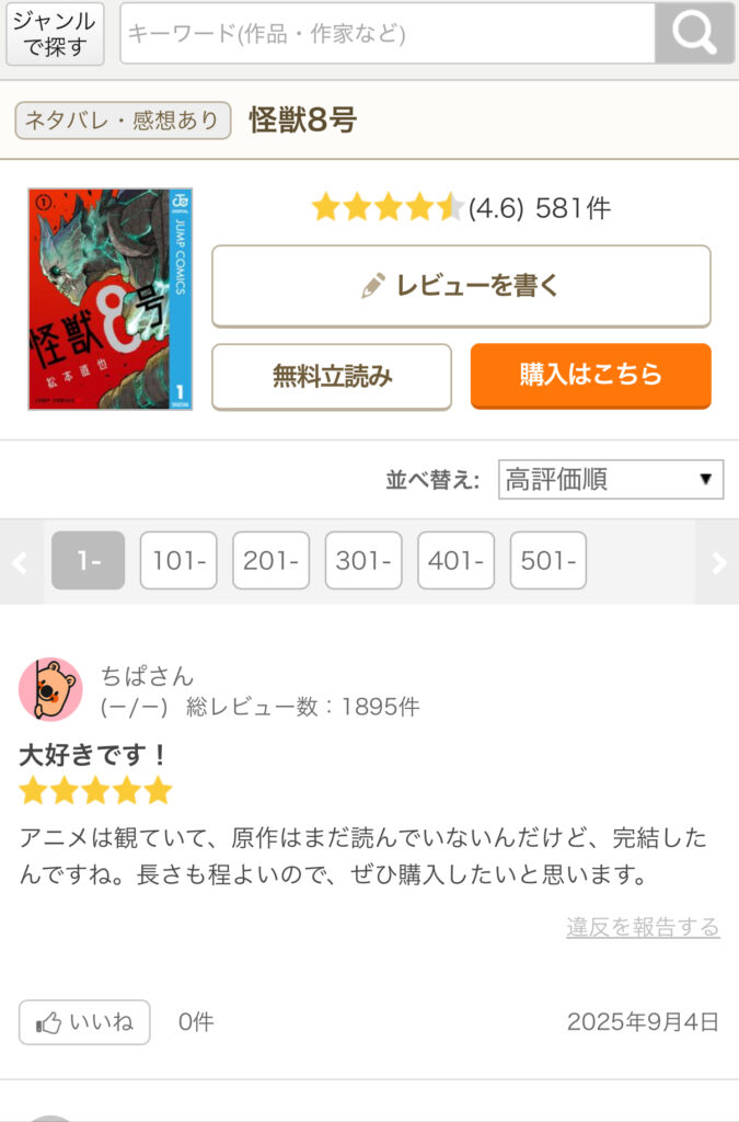 ⬇画面を下にスクロールすると、2巻以降が表示される