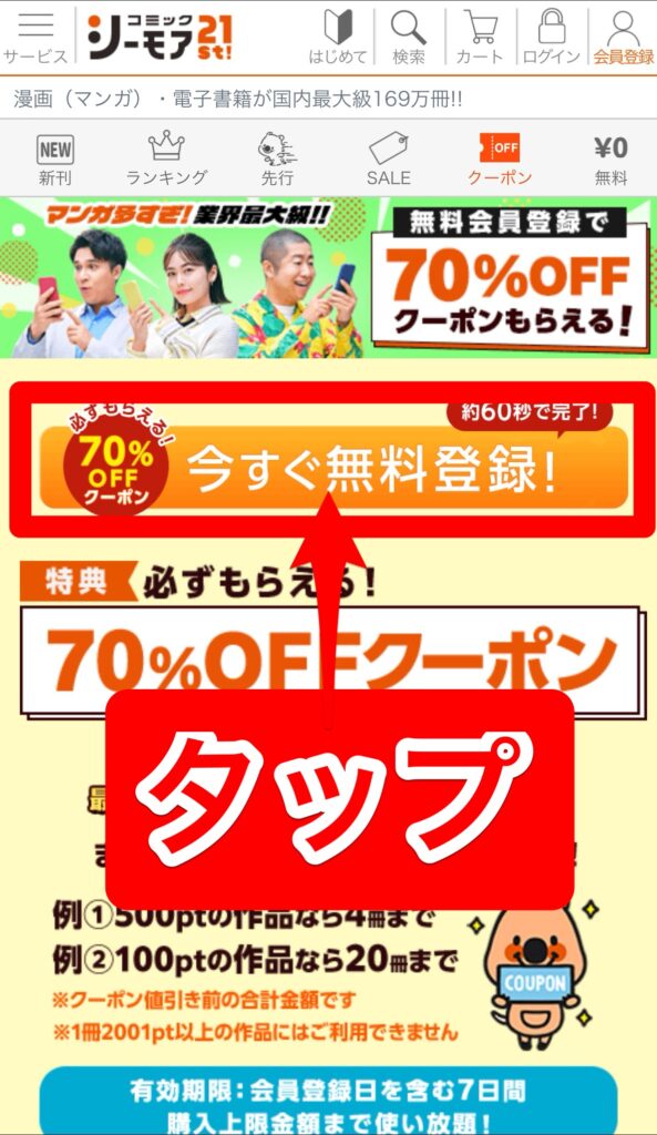 コミックシーモアの無料会員登録についてはこちらの記事も参考にしてください。