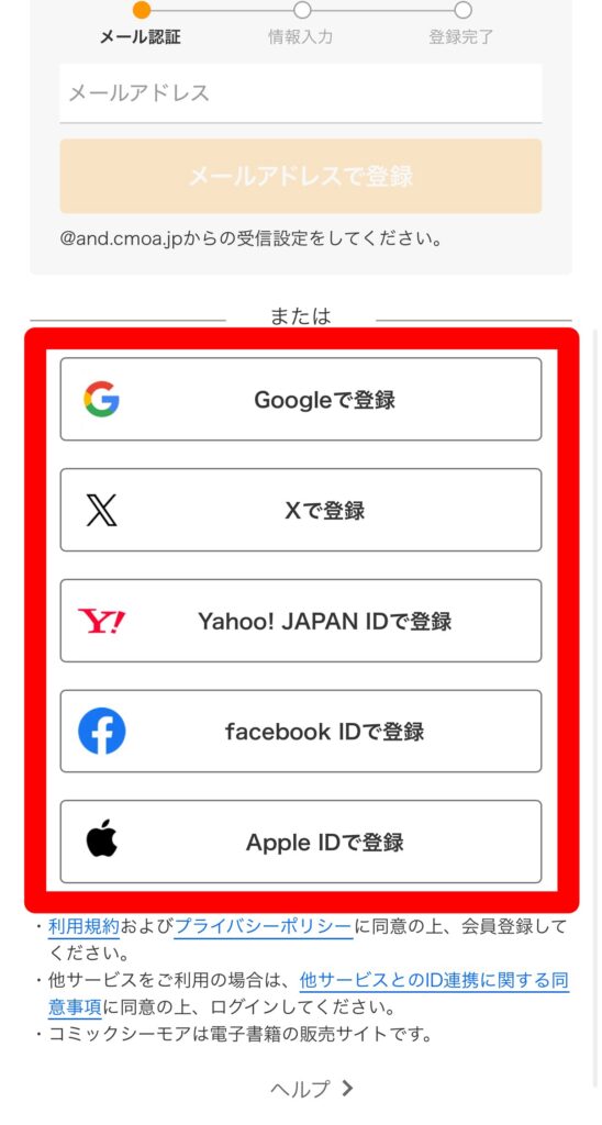 ※「LINE」か「メールアドレス」以外で登録をしたい場合