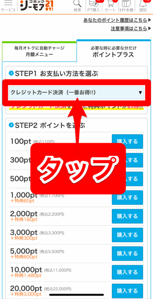 コミックシーモアのポイントの貯め方- 月額メニューでポイントを獲得する