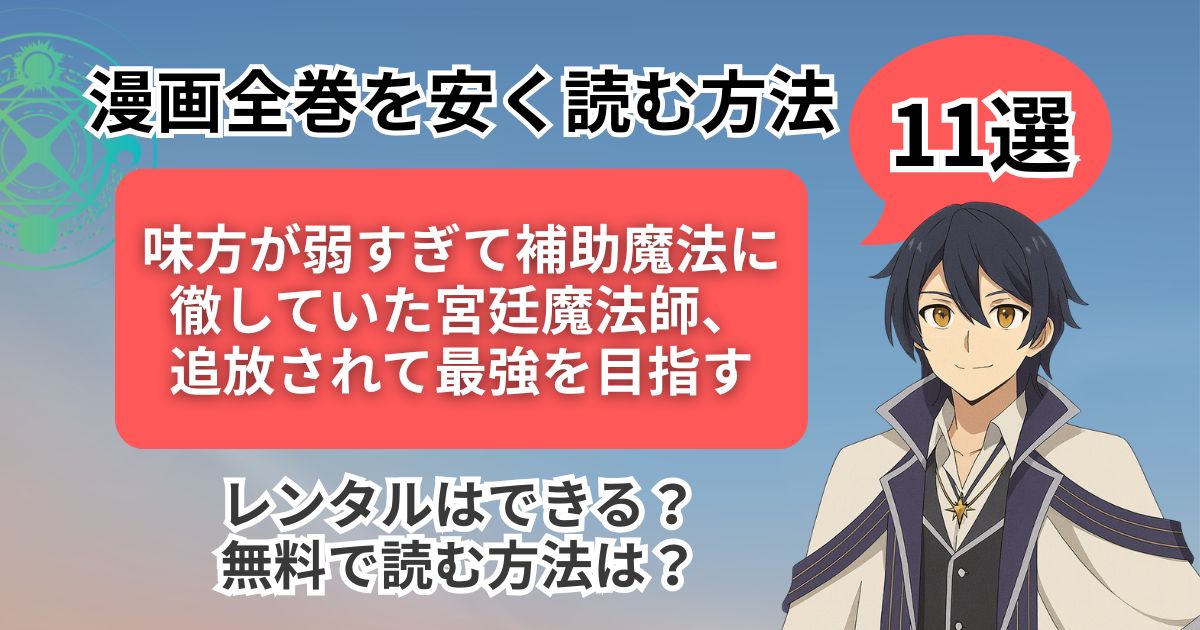 この記事では、漫画『味方が弱すぎて補助魔法に徹していた宮廷魔法師、追放されて最強を目指す』全巻をできるだけ安く読む方法について、以下の内容で紹介します。