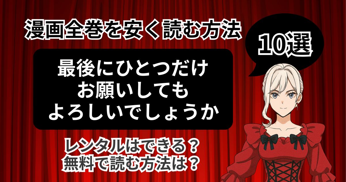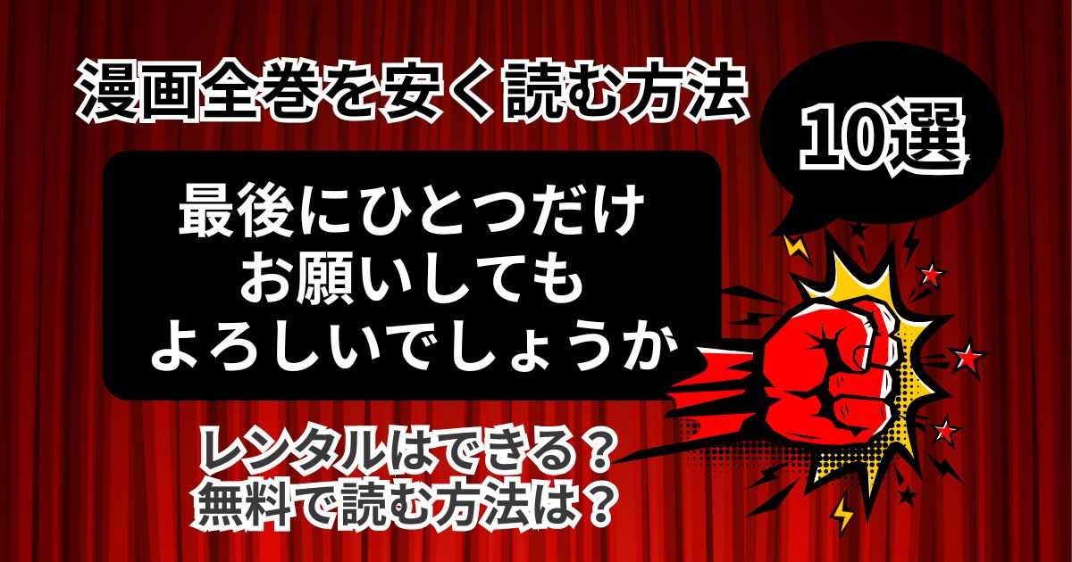 この記事では、漫画『最後にひとつだけお願いしてもよろしいでしょうか』全巻をできるだけ安く読む方法について、以下の内容で紹介します。