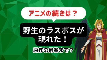 アニメ続編ガイド 【毎週更新】アニメ「野生のラスボスが現れた!」1期は原作漫画のどこまで?続きはどこから? 話題の「野生のラスボスが現れた!」!アニメの続きが気になる!という人に向けて、漫画や小説の何巻から読んだらいいのか、について解説しています。 アニメ続編ガイド