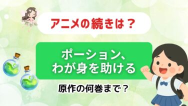 アニメ続編ガイド 【毎週更新】アニメ「ポーション、わが身を助ける」は原作漫画のどこまで?続きはどこから? 話題の「ポーション、わが身を助ける」!アニメの続きが気になる!という人に向けて、漫画や小説の何巻から読んだらいいのか、について解説しています。 アニメ続編ガイド