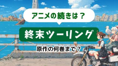 アニメ続編ガイド 【毎週更新】アニメ「終末ツーリング」1期は原作漫画のどこまで?続きはどこから? 話題の「終末ツーリング」!アニメの続きが気になる!という人に向けて、漫画や小説の何巻から読んだらいいのか、について解説しています。 アニメ続編ガイド